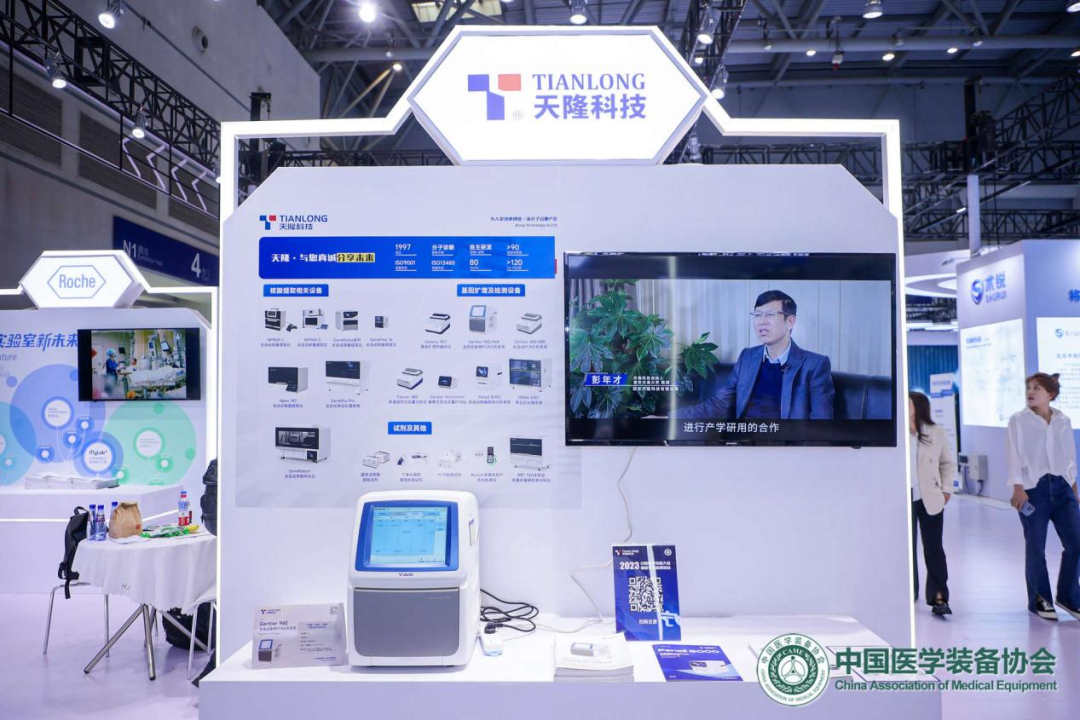 作為本土誕生發(fā)展的民族企業(yè),天隆科技立足自主研發(fā),深耕基因檢測、分子診斷領(lǐng)域26載,突破系列“卡脖子”技術(shù)壁壘,形成一體化的高通量多靶標核酸自動化定量檢測系統(tǒng)解決方案和產(chǎn)品組合,并實現(xiàn)大規(guī)模的產(chǎn)業(yè)化成果應(yīng)用。本次展出的Gentier 96E全自動醫(yī)用PCR分析系統(tǒng)、GeneRotex+全自動核酸純化儀、iGencase 1600便攜式核酸檢測箱、Panall 8000全自動多重病原體檢測分析系統(tǒng)等均是天隆科技科技創(chuàng)新的轉(zhuǎn)化成果,并且設(shè)備關(guān)鍵模塊實現(xiàn)了自研自產(chǎn),可靈活滿足用戶多樣化需求。天隆產(chǎn)品同步在醫(yī)學檢驗展區(qū)和關(guān)鍵零部件展區(qū)列展亮相,吸引了諸多專家學者駐足交流。