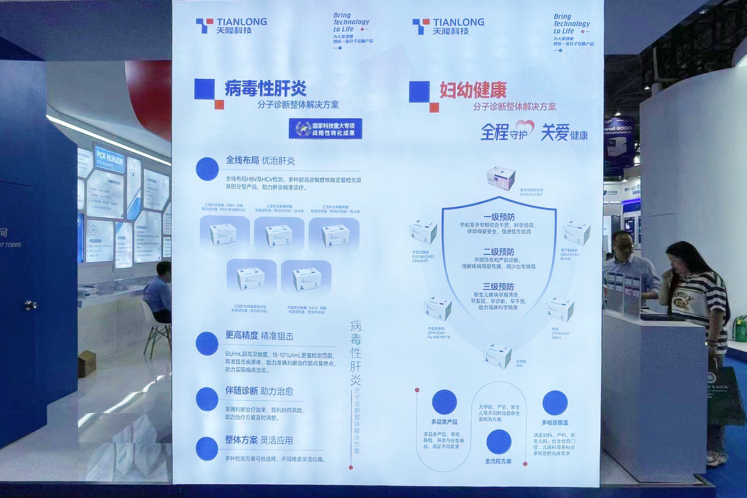 展會期間,天隆參與的國家科技重大專項戰(zhàn)略性轉(zhuǎn)化成果:超高敏乙肝病毒(HBV)核酸測定試劑盒,及人運動神經(jīng)元存活基因1(SMN1)等試劑產(chǎn)品同樣吸引了參展人員諸多目光。