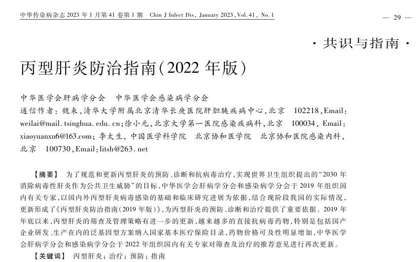 [2] 中華醫(yī)學(xué)會肝病學(xué)分會, 中華醫(yī)學(xué)會感染病學(xué)分會. 丙型肝炎防治指南(2022年版)[J]. 中華傳染病雜志2023, 41(1): 29-46.